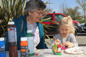Für Stärkung sorgte eine Kaffeebar und ein Stand des Attler Naturlandhofs mit Produkten aus eigener Herstellung. Beliebt war zudem ein Probierstand mit selbstgepressten Gemüse- und Obstsäften nach eigenen Rezepten der Gärtnerei. Den jüngsten Gästen bot eine Bastelstation die Möglichkeit, einen buntes Mini-Huhn für Kresse zu gestalten.