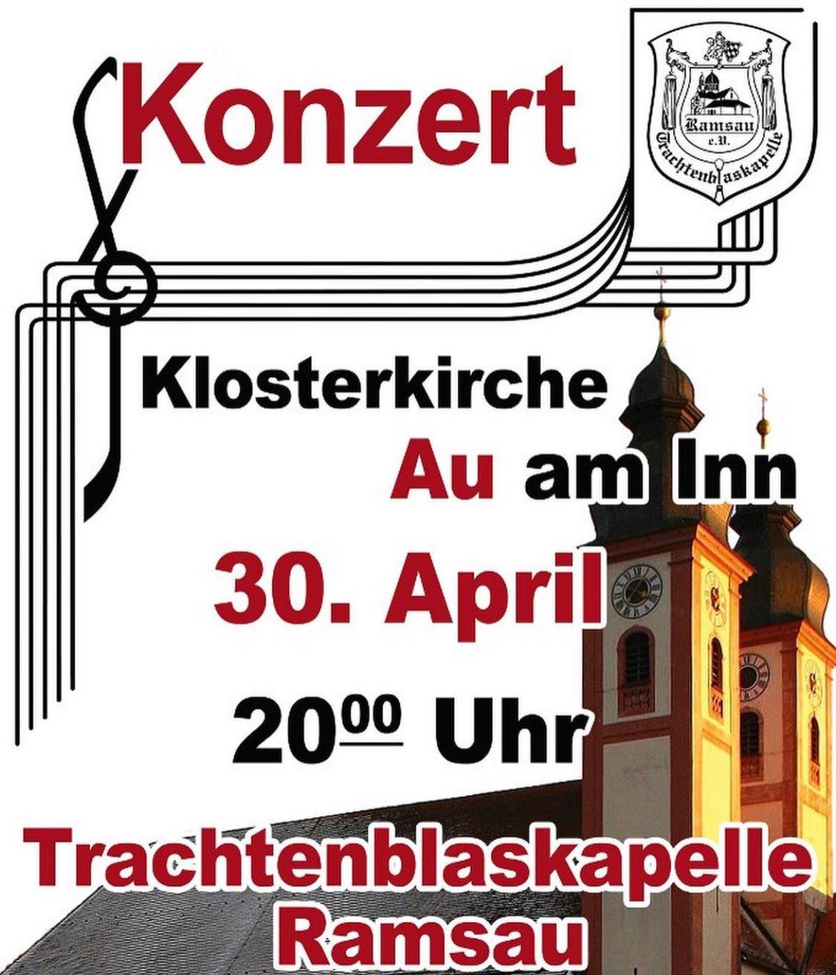Nächste Woche am Donnerstag, 30. April, 20 Uhr, lädt die Trachtenblaskapelle (TBK) Ramsau zum traditionellen Kirchenkonzert in die barocke Klosterkirche in Au am Inn ein. Auch dieses bildet das Konzert einen schönen, musikalischen Ausklang des Aprils. Mit einer ausgewählten Mischung aus getragenen, feierlichen und klanglich facettenreichen Werken wird zugleich der Marienmonat Mai begrüßt. Die besondere Akustik der Kirche verleiht dem Konzert dabei eine ganz eigene Atmosphäre.