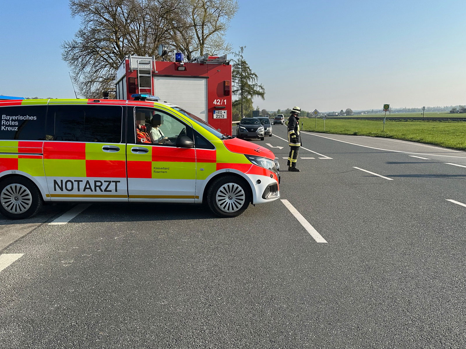 Einsatzkräfte am frühen Morgen zwischen Rott und Hochstätt im Einsatz
