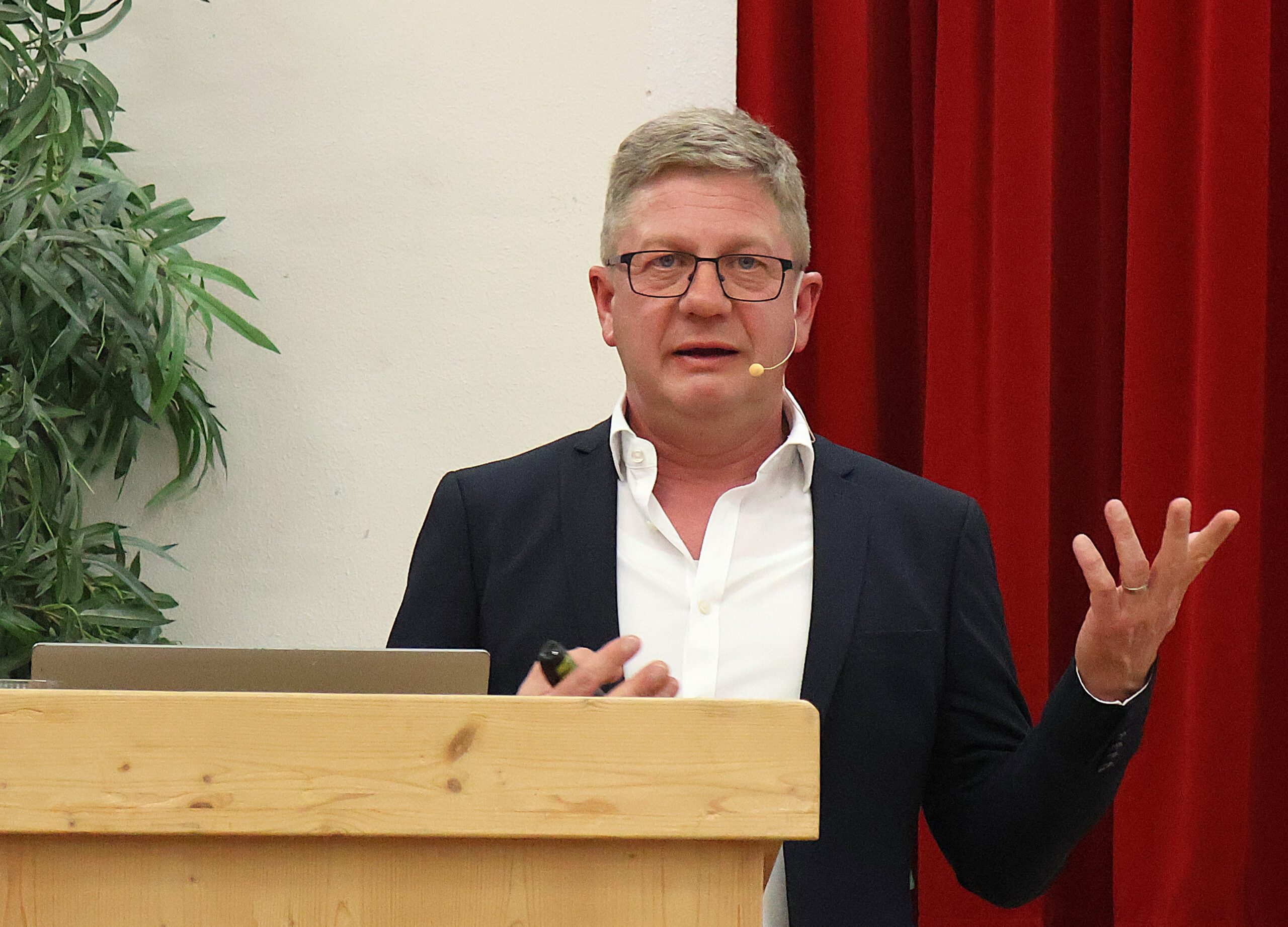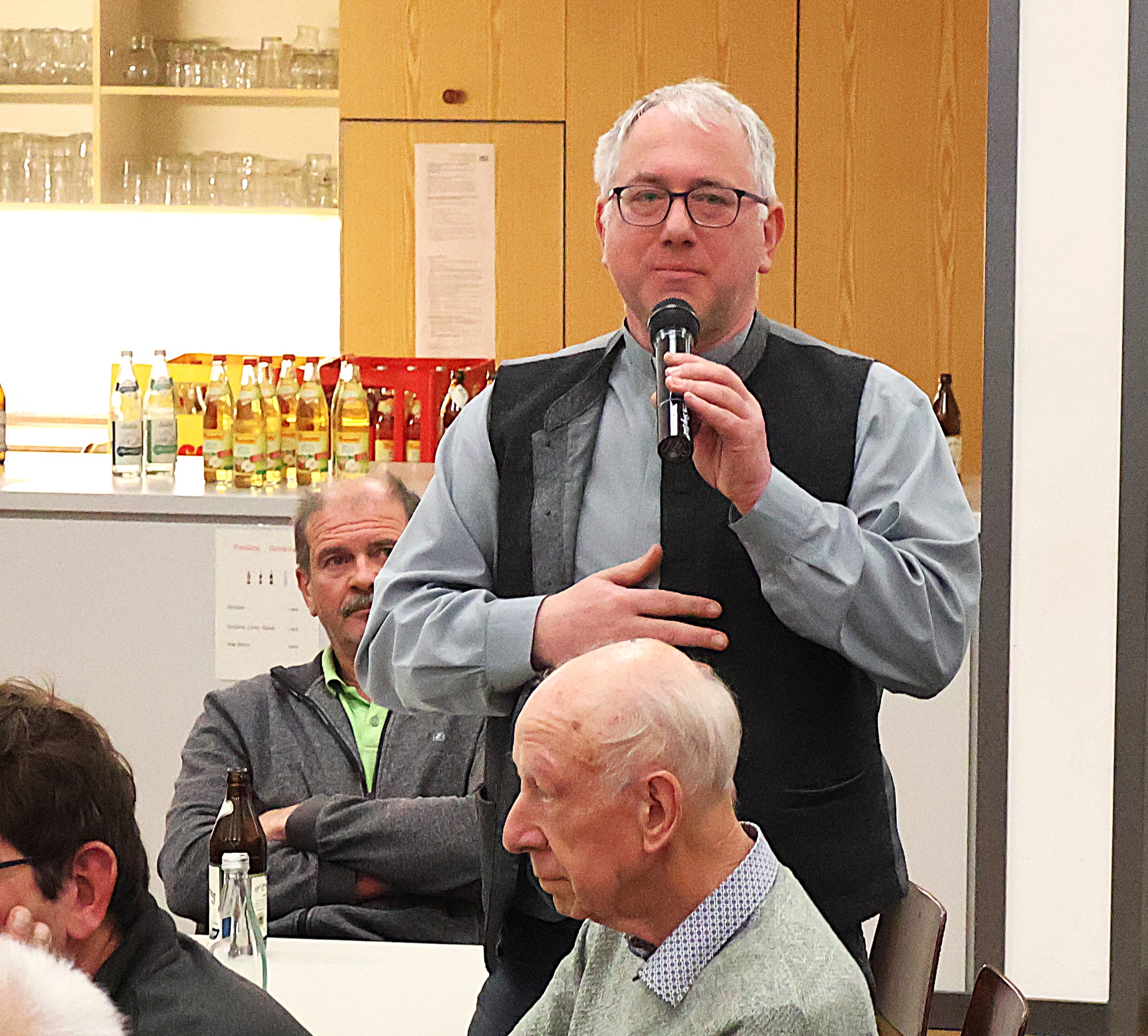… fragte Peter Lorenz (Foto unten am Mikro) nach, warum es bei der Agri-PV-Anlage in Hart bei Lehen keine Bürgerbeteiligung wie in anderen Gemeinden gebe? Bürgermeister Niedermeier betonte, dass es sich hier zu 100 Prozent um eine private Anlage der Firma Alpenhain handele.