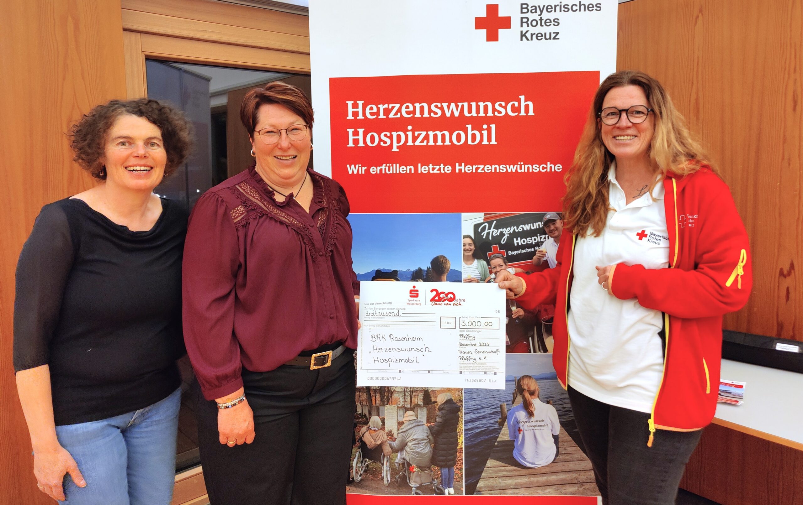 Vorstandsmitglied Bettina Fritzenwenger, die Vorsitzende der Frauen Gemeinschaft – Christine Schwarzenböck – sowie Claudia Seethaler vom Team des BRK-Herzenswunsch-Hospizmobil.