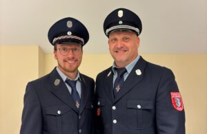 Zum neuen 1. Kommandanten wurde der bisherige Stellvertreter Stefan Weinberger (im Bild rechts) gewählt. Das Amt des 2. Kommandanten übernimmt künftig Peter Gäßl junior (links). Vertreter aus Gemeinde und Kreisfeuerwehr, darunter Kreisbrandinspektor Stephan Hangl und Kreisbrandmeister Michael Mayer, gratulierten den Gewählten und würdigten zugleich das  große ehrenamtliche Engagement der Feuerwehr.