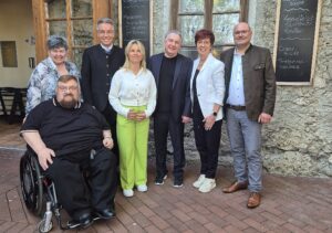 Unser Bild zeigt von links den stellvertretenden Vorsitzenden Hans Loy, die ehemalige Kreisvorsitzende Marianne Keuschnig, Landrat Otto Lederer, die VdK-Landesvorsitzende Verena Bentele, den neuen Kreisvorsitzenden Willi Hofmann, die stellvertretende Vorsitzende Ulrike Plankl und VdK-Kreisgeschäftsführer Dietrich Mehl.