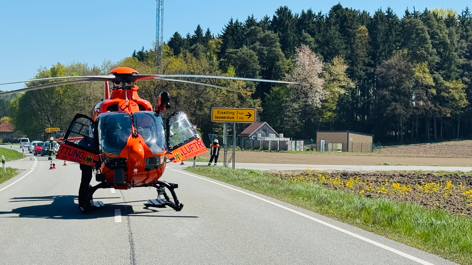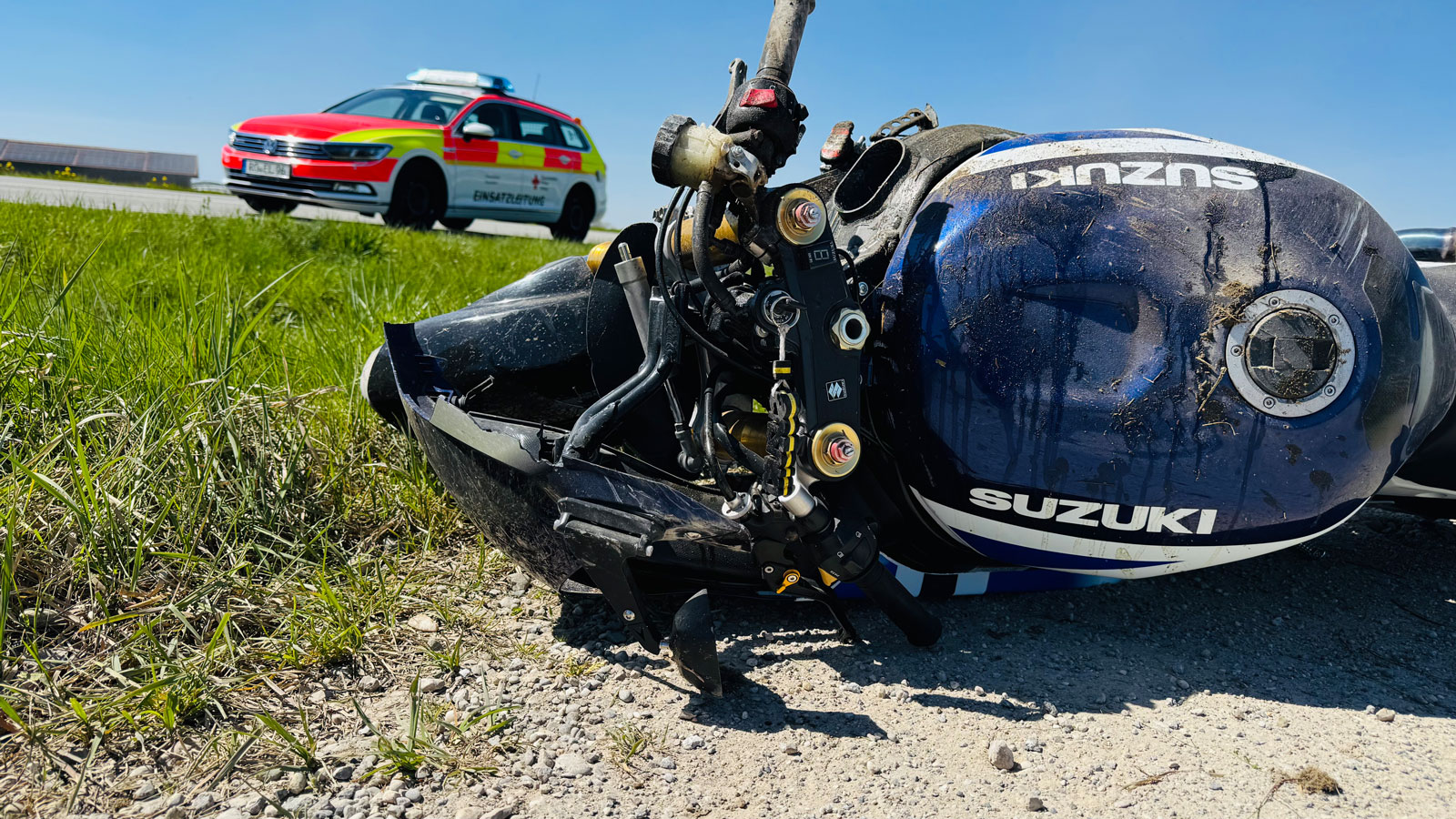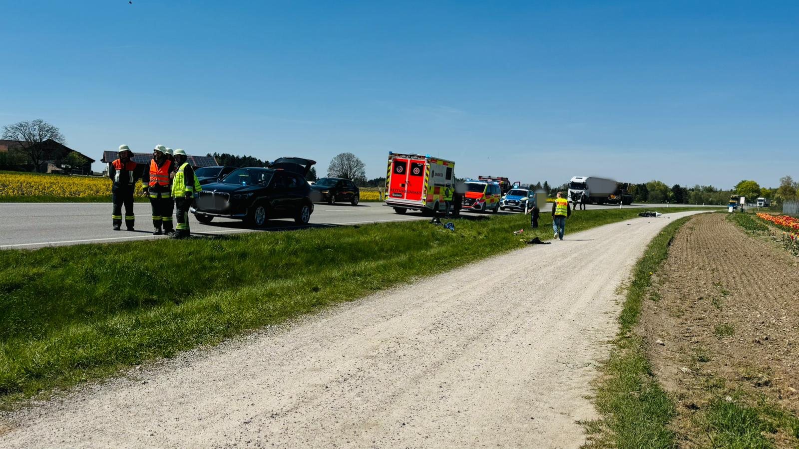 Ersten Meldungen nach musste der Zweiradfahrer einem Pkw ausweichen, der an der Kreuzung Richtung Gammersham (Gemeinde Eiselfing) auf die Bundesstraße eingefahren war. Der Motorradfahrer konnte einen Zusammenprall gerade noch verhindern, stürzte aber nach dem Ausweichmanöver. Die Bundesstraße war während der Unfallaufnahme komplett gesperrt. Die Feuerwehr leitete den Verkehr um. Polizeibericht folgt.