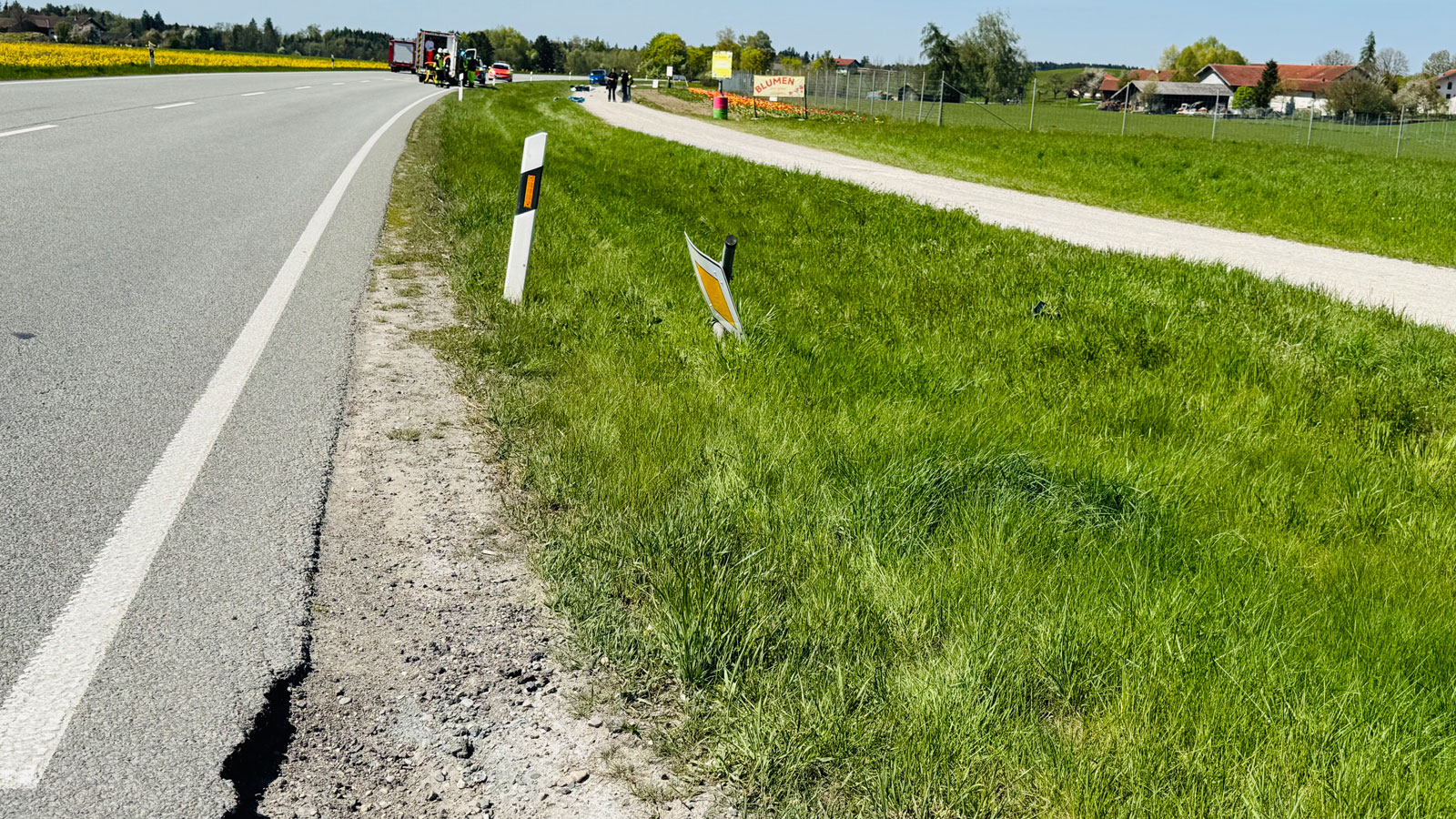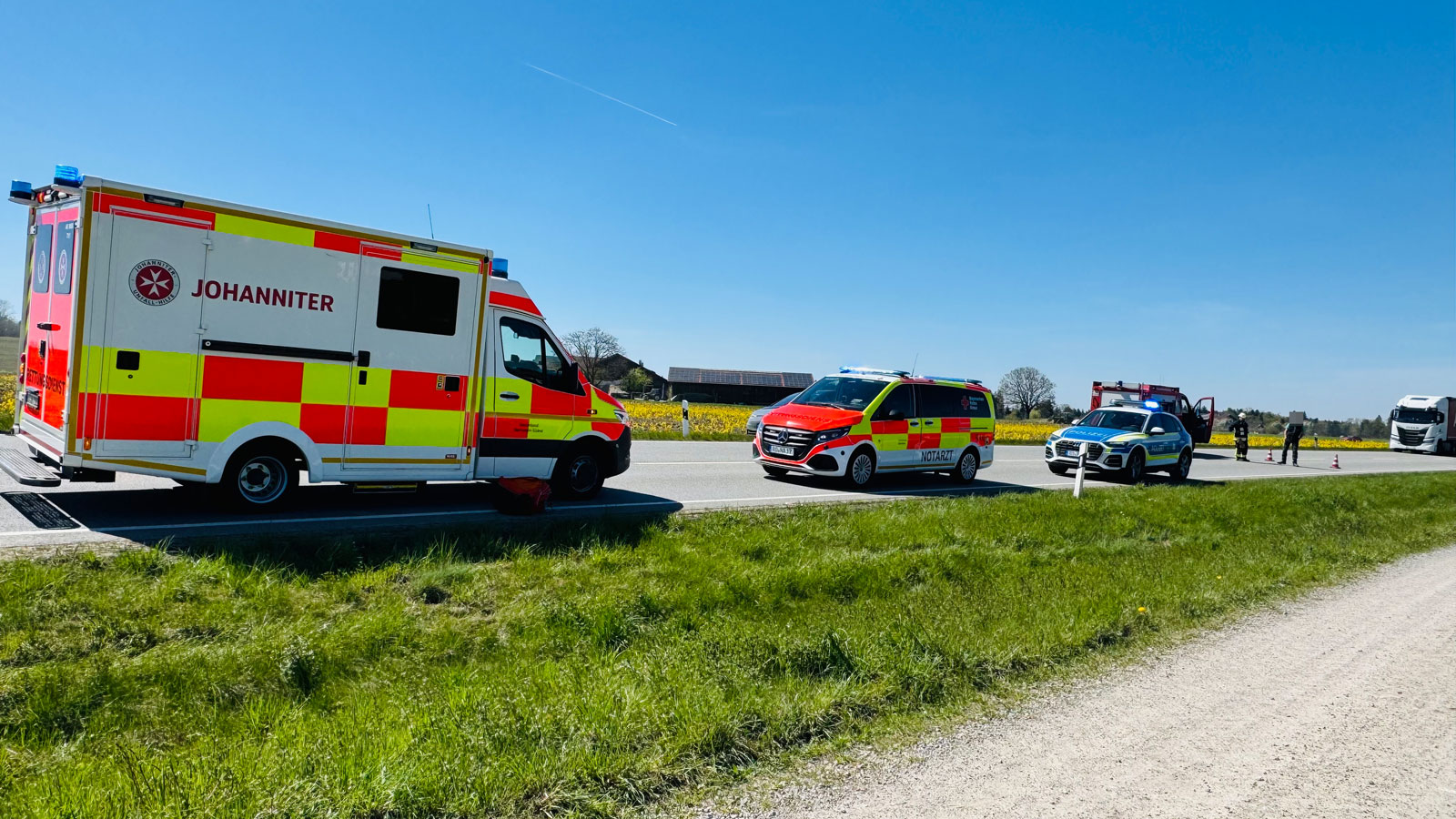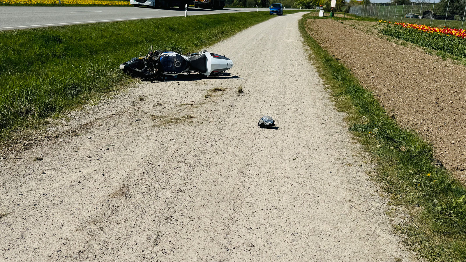 Ersten Meldungen nach musste der Zweiradfahrer einem Pkw ausweichen, der an der Kreuzung Richtung Gammersham (Gemeinde Eiselfing) auf die Bundesstraße eingefahren war. Der Motorradfahrer konnte einen Zusammenprall gerade noch verhindern, stürzte aber nach dem Ausweichmanöver. Die Bundesstraße war während der Unfallaufnahme komplett gesperrt. Die Feuerwehr leitete den Verkehr um. Polizeibericht folgt.