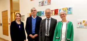 Die HPV-Schulimpfaktion des Gesundheitsamts Rosenheim könnte als Vorbild für landesweite Projekte dienen: Ministerialdirektor Dr. Rainer Hutka und Ministerialdirigentin Elisabeth Süß vom Bayerischen Staatsministerium für Gesundheit, Pflege und Prävention informierten sich über das Pilotprojekt des Amts. Judith Blauth und Amtsleiter Dr. Wolfgang Hierl begrüßten die Delegation und präsentierten die Ergebnisse der Impfaktion am Karolinen-Gymnasium.