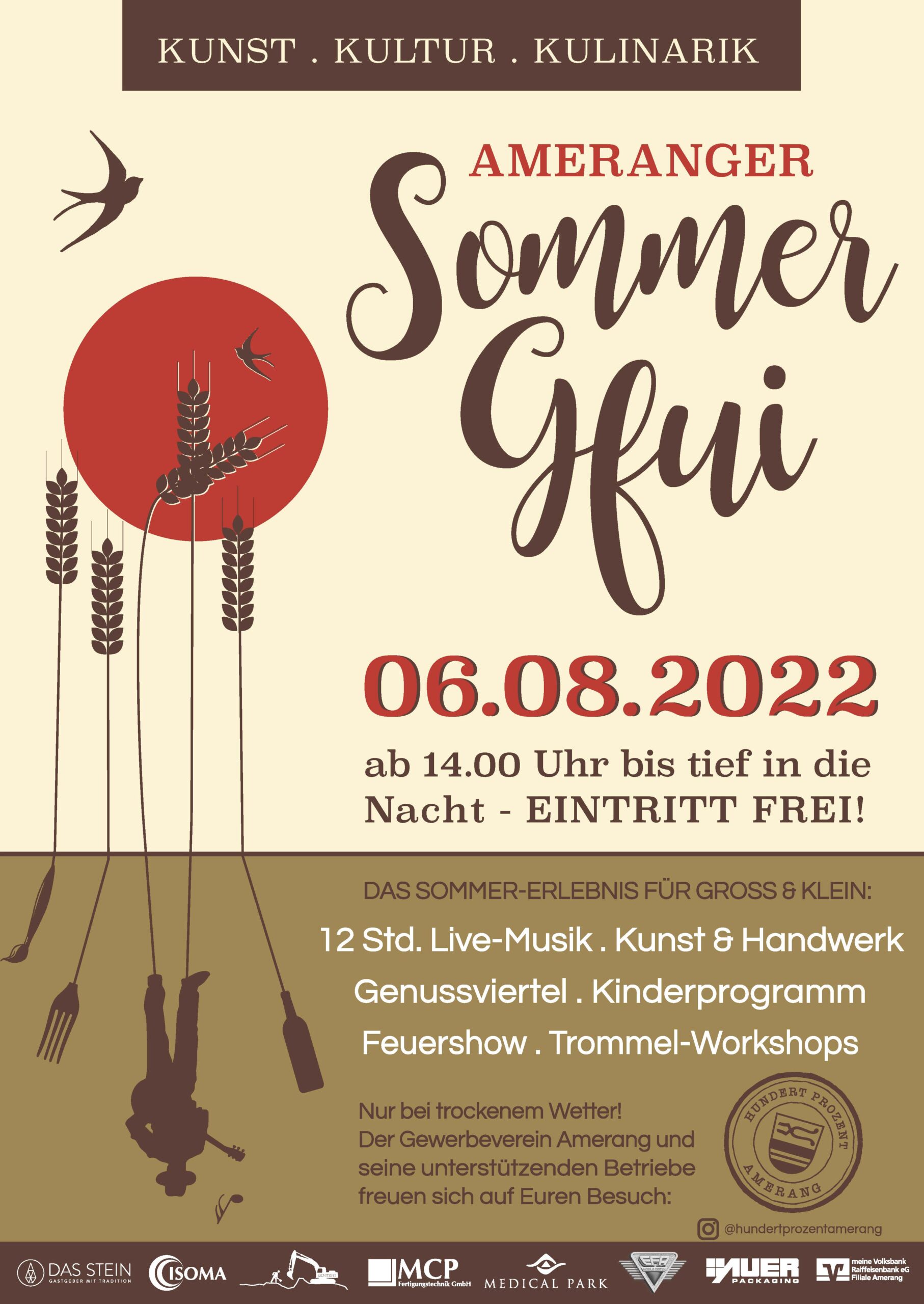 Am 06. August veranstalten wir unter dem Motto „Ameranger Sommer Gfui“ ein Kunst-Kultur-Kulinarik-Event der besonderen Art: