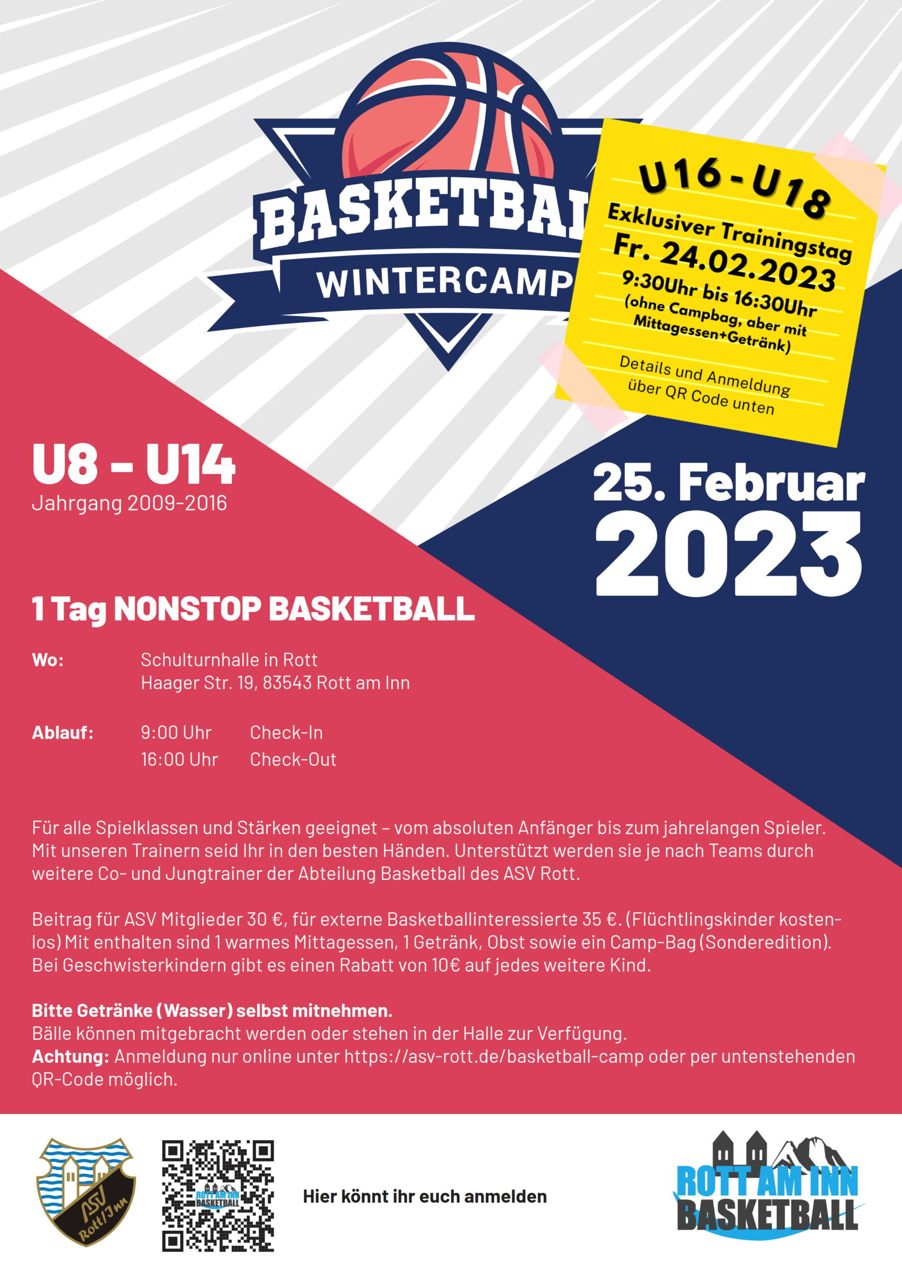Beitrag für ASV Mitglieder 25 €, für externe Basketballinteressierte 30 € (Flüchtlingskinder kostenlos).