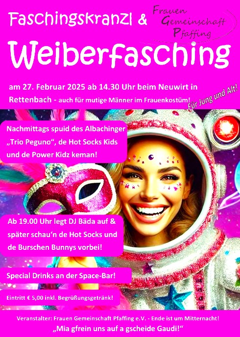 27Feb14:30Faschingskranzl und Weiberfasching in Pfaffingbeim Neuwirt in Rettenbach