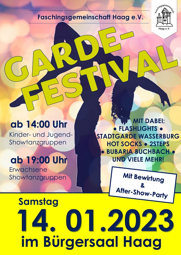 Ab 19 Uhr beherrschen dann die Erwachsenen-Gardemannschaften die Bühne. Es funkelt, glitzert, und die Rhythmen sollen alle Gäste zum Mitwippen und fröhlichem Applaus animieren. Die FaGeHa mitsamt der Carambas aus Haag freuen sich auf viele Besucher, die gute Laune und viele schöne Tänze anschauen mögen. Wichtiger Hinweis der Carambas: Zum Jubiläumsjahr gibt es heuer wieder die legendäre Bürgersaal-Bar mit After-Show-Party.
