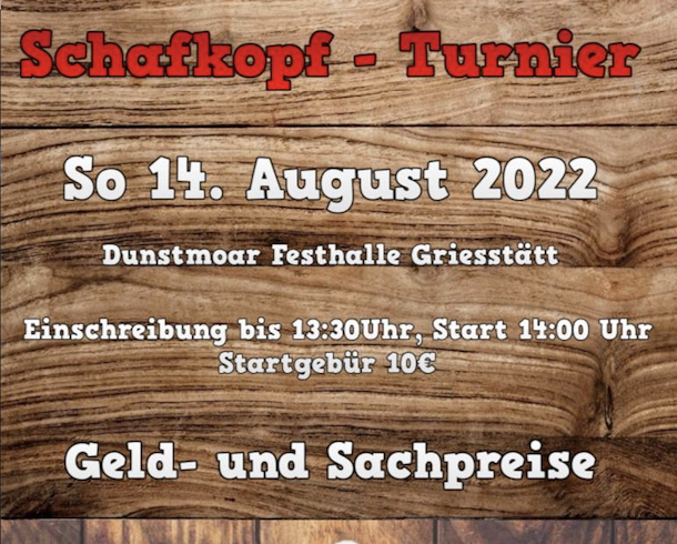 Das traditionelle Gartenfest der Feuerwehr Griesstätt findet am Sonntag, 14. August, an der Dunstmoar Festhalle statt. Es beginnt um 10 Uhr mit einem Frühschoppen mit frischen Weißwürsten. Ab 11.30 Uhr ist Mittagstisch. Nachmittags gibt es Kaffee und Kuchen. Bis 13.30 Uhr kann man sich für das Preisschafkopfen anmelden, das um 15 Uhr startet. Ab 18 Uhr gibt es Burger und Grillspezialitäten.