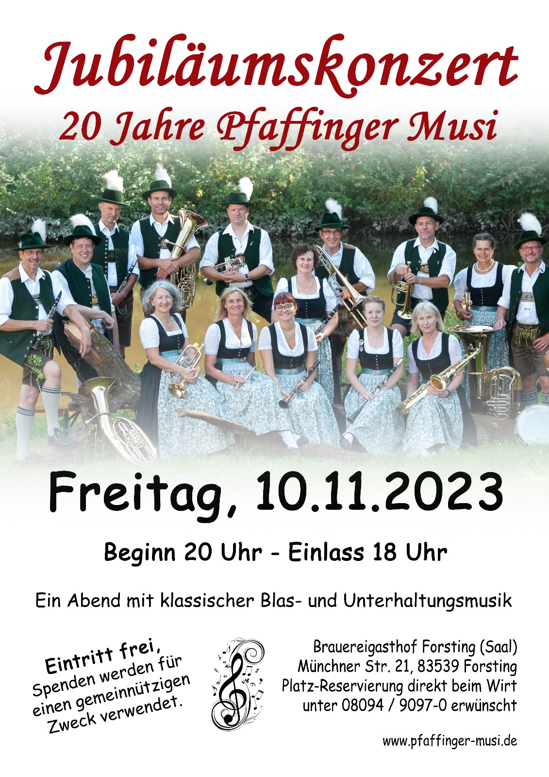 10Nov20:00Jubläumskonszert 20 Jahre Pfaffinger Musi im Brauereigasthof ForstingEinlass ab 18 Uhr - www.pfaffinger-musi.de