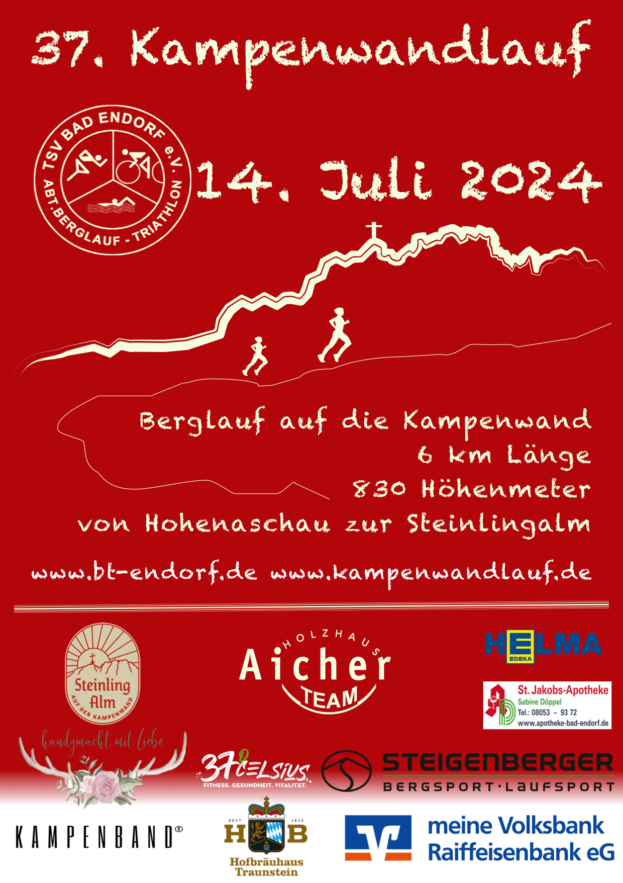 Unter www.kampenwandlauf.de ist die Online-Anmeldung noch bis 11.07.2024 möglich. Spontane LäuferInnen können sich auch bis eine Stunde vor dem Start, direkt vor Ort, nachmelden.