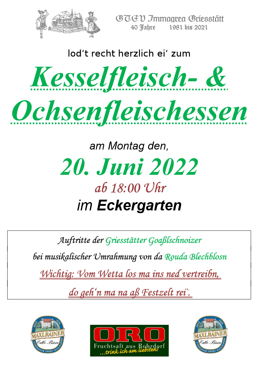 Kessel- und Ochsenfleischessen vom Trachtenverein Immagrea Griesstätt im Eckergarten.
