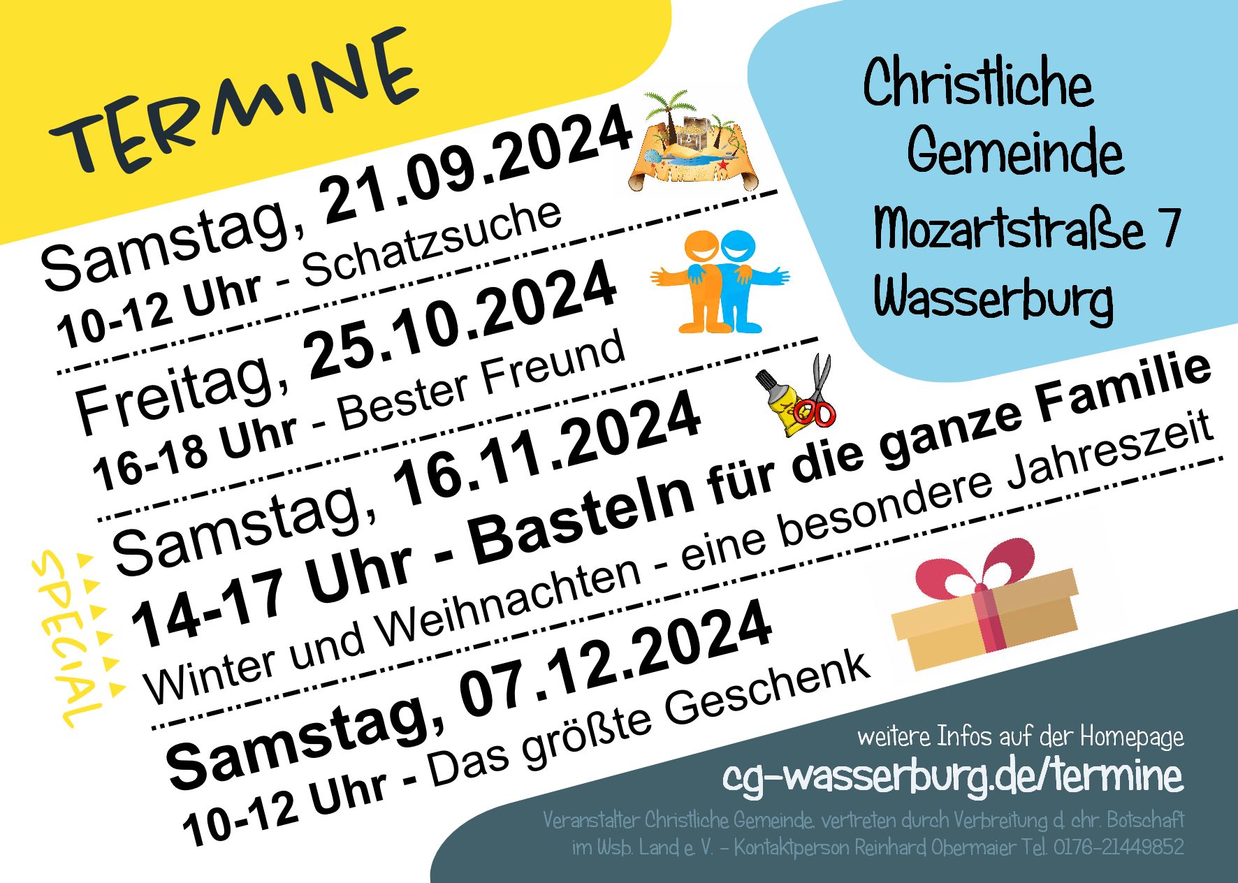 Ein Kids-Treff für Grundschüler findet am Samstag, 21. September, von 10 bis 12 Uhr bei der Christlichen Gemeinde in der Mozartstraße in Wasserburg statt. Diesmal steht alles unter dem Thema „Schatzsuche“.