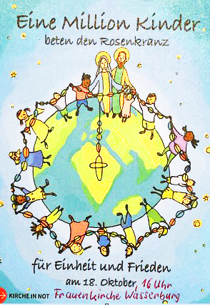 Zudem werden die Jüngsten am Montag zum Weltgebetstag eingeladen – EINE MILLION KINDER BETEN DEN ROSENKRANZ – so das Thema. Und zwar am Montag um 16 Uhr in der Frauenkirche am Wasserburger Marienplatz.