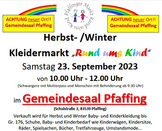 23Sep10:0012:00Kleidermarkt Pfaffingim Pfaffinger Gemeindesaal