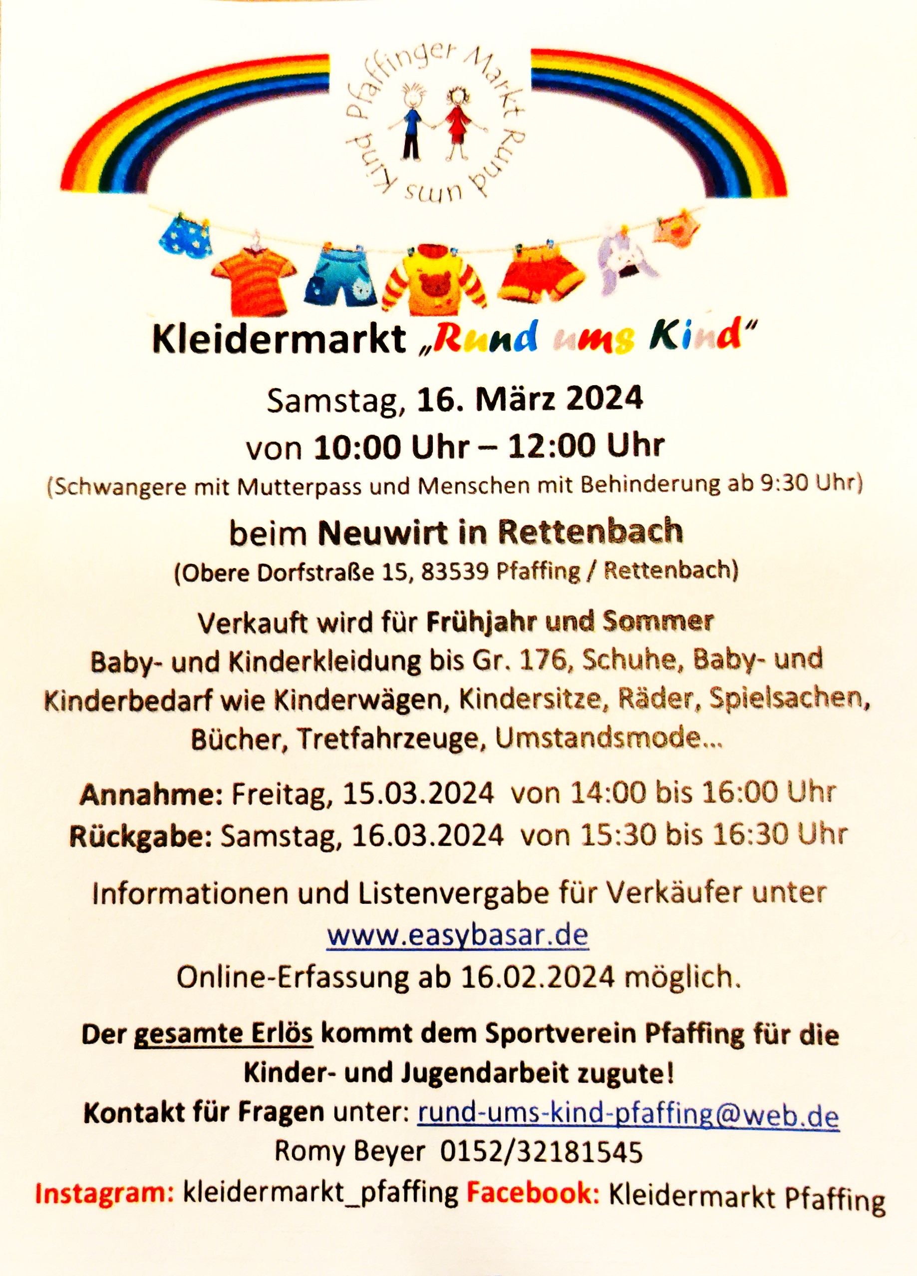 16Mär10:0012:00Kleidermarkt "Rund ums Kind" in Pfaffingbeim Neuwirt in Rettenbach