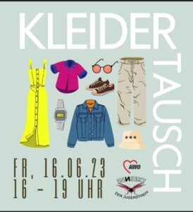 Am Freitag, den 16. Juni findet im Jugendtreff Innsekt von 16 bis 19 Uhr ein Kleidertausch für Jugendliche und Erwachsene statt.