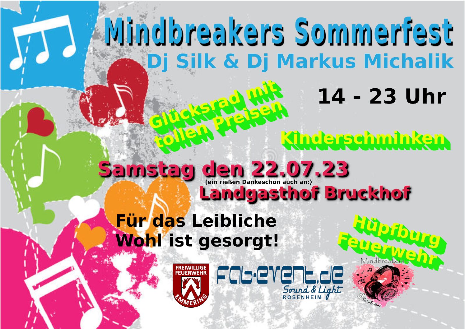 Das Sommerfest wird ohne Eintritt stattfinden und es sind tolle Highlights wie Bands am Nachmittag, Hüpfburg, Kinderschminken, Tombola mit attraktiven Preisen, Schmankerl, Kaffee-Kuchen-Verkauf, Popcorn, Rundfahrt und ein Eimerschießen mit der Feuerwehr Emmering geplant.