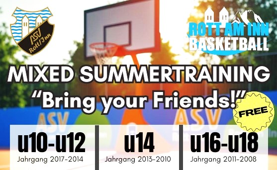 Der ASV Rott lädt alle Basketball-Begeisterten (und solche die es werden wollen) ab Montag, 11. August bis zum 5. September zu einem coolen „Mixed-Summer-Training“. Es wird von Coach Vadim Tiselsky geleitet und bietet eine tolle Gelegenheit, Basketball zu spielen, Spaß zu haben und neue Freunde zu treffen.