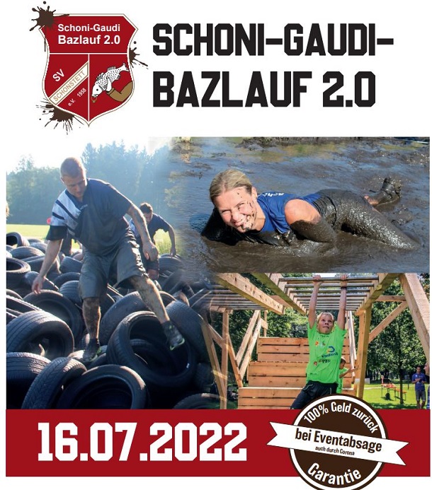 Der „Schoni-Gaudi-Bazlauf“ ist Schonstetts Schlamm- und Hindernislauf für jedes Fitnesslevel. Er findet heuer zum zweiten Mal statt Die Laufstrecke bei diesem Lauf ist zirka fünf Kilometer lang und gespickt mit spaßigen und schlammigen Team-Hindernissen. Ob Laufen, Joggen oder Gehen, ob Jung oder Alt – jeder kann daran teilnehmen, am besten aber nicht alleine. Geschwister, Eltern, Großeltern, Kinder, Nachbarn, Kollegen, Mannschaftskollegen bilden ein Team, um am 16. Juli einen unglaublichen Tag im Schlamm zu verbringen und Spaß zu haben.