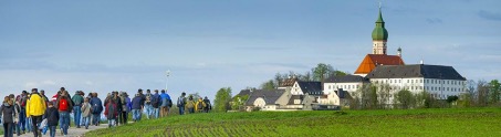 Die Wanderer können erst einmal diesen einmaligen Ort erkunden, die Seepromenade genießen und es gemütlich angehen lassen. Anschließend nehmen sie den Bus zum Kloster Andechs und schließen sich der Wandergruppe an.