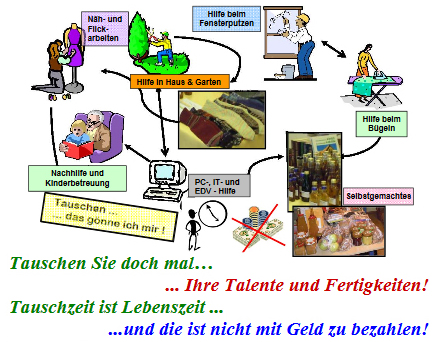 Vielleicht möchte man ja auch Mitglied in der Tauschgemeinschaft werden. Getauscht werden Talente und Sachen.