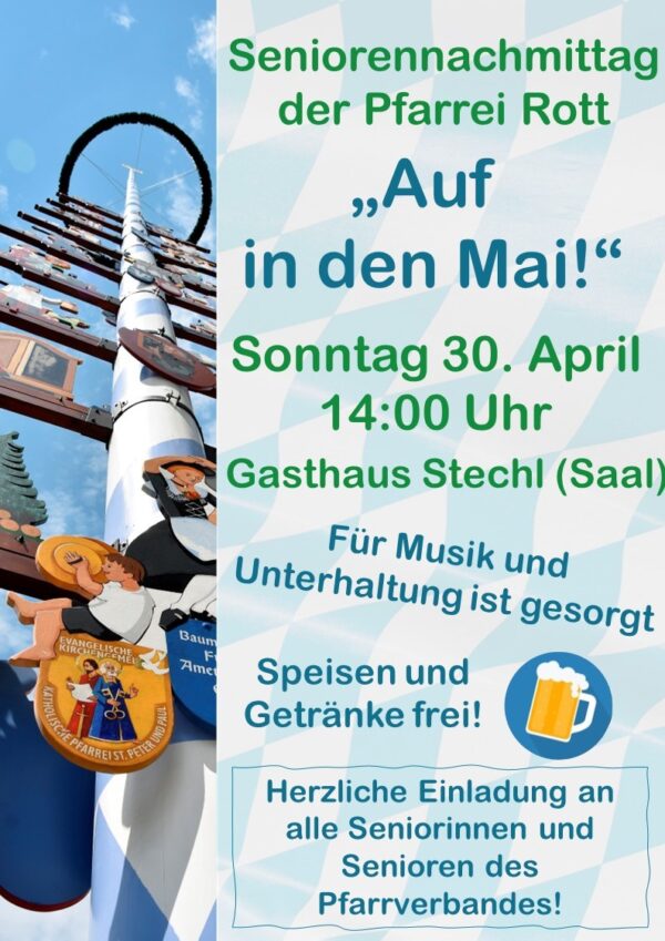 „Auf in den Mai“: Am Sonntag, 30. April, findet ab 14 Uhr im Gasthaus Stechl in Rott ein Senioren-Nachmittag unter diesem Motto statt.