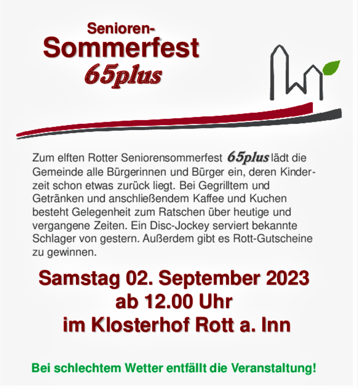 Eine Klasse-Idee: Unter freiem Himmel lädt die Gemeinde herzlichst in den Klosterhof zu einem Sommerfest „65plus“ ein.