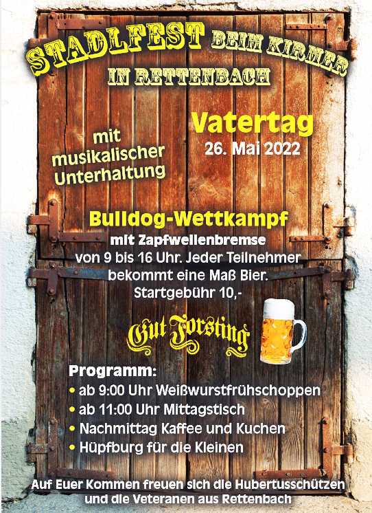 Stadlfest beim Kirmer in Rettenbach am 26. Mai mit musikalischer Unterhaltung.