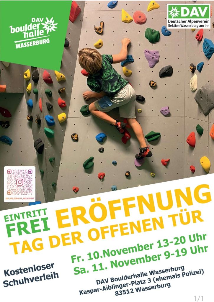 10NovGanztägig11Tag der offene Tür in der DAV Boulderhalle WasserburgKasper-Aiblinger-Platz 3 - in der ehemaligen Polizeigarage