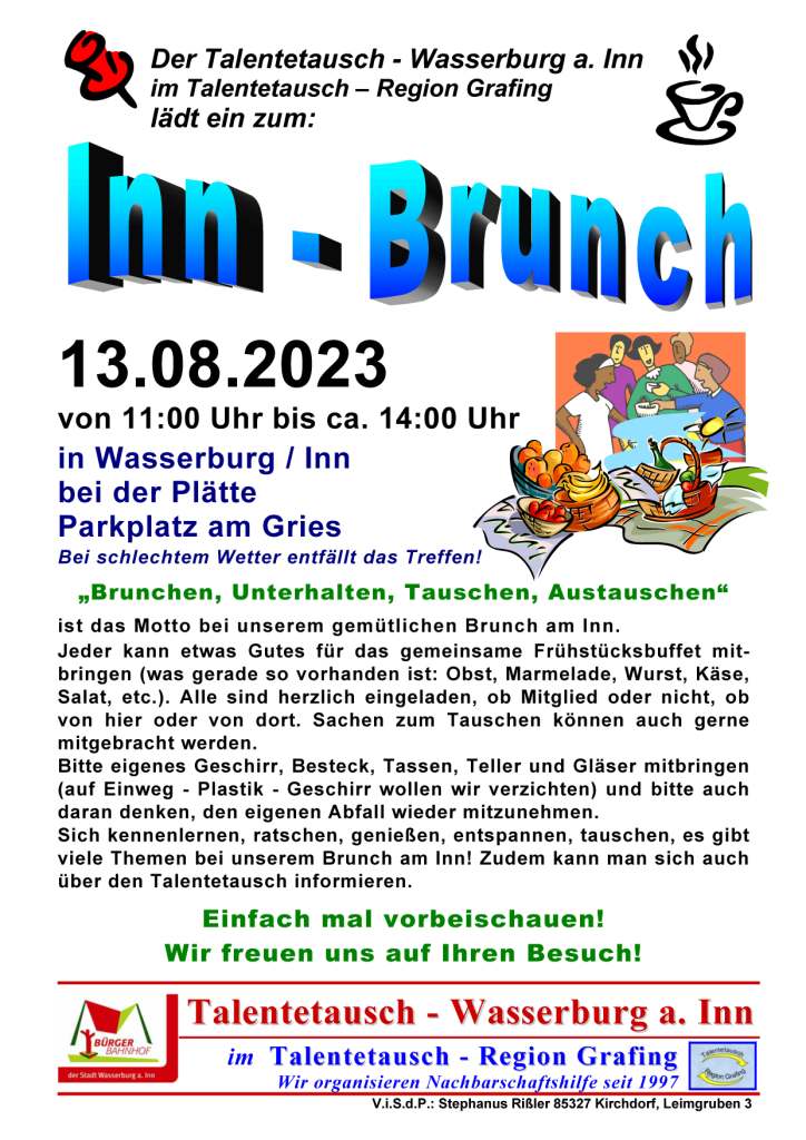 Ein Talentetausch-Treffen an einem besonderen Ort: Bei der Plätte am Fluss nahe des Parkplatzes am Gries in Wasserburg findet am 13. August ein Inn-Brunch statt. Beginn ist um 11 Uhr.