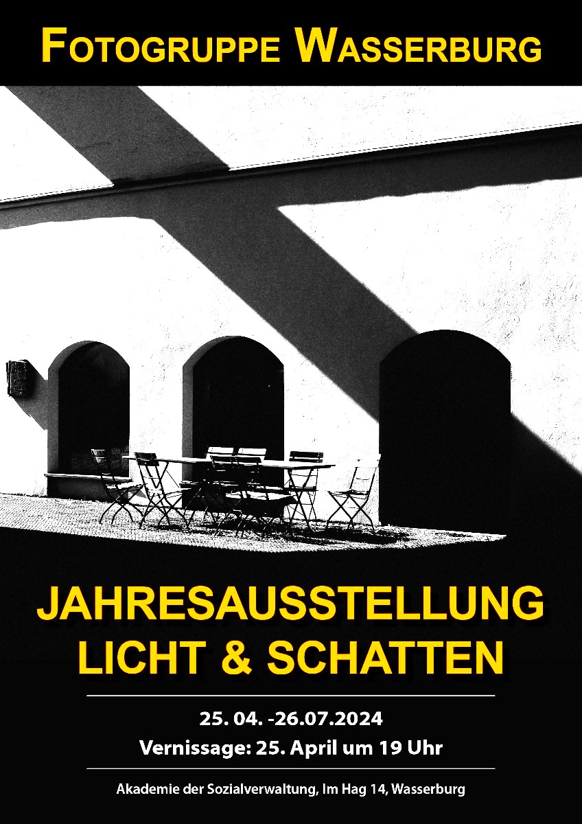 Zu diesem Thema präsentiert die Fotogruppe Wasserburg diesmal ihre Jahresausstellung. Die Ausstellung bietet einen Einblick in die Welt der Fotografie aus neuen Perspektiven und lädt Besucher dazu ein, die vielfältigen Facetten von Licht und Schatten zu erkunden.