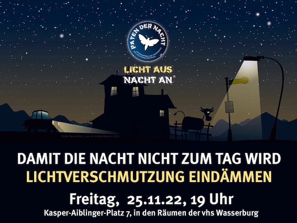 Am Freitag, 25. November, findet um 19 Uhr bei der VHS Wasserburg in den Räumen am Kasper-Aiblinger-Platz ein Vortrag zum Thema „Lichtverschmutzung eindämmen –