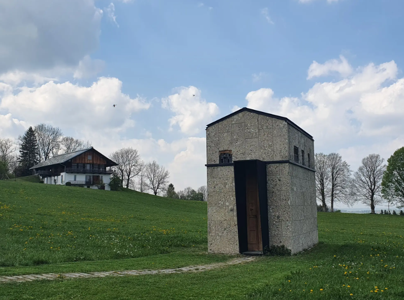die Auerberg- kapelle, eine ganz moderne Kapelle, schlicht aus Nagelfluh errichtet. 2012 wurde diese Hofkapelle vom italienischen
