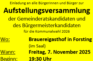 Aufstellungs-Versammlung zur Kommunalwahl 2026 am Abend im Brauereigasthof