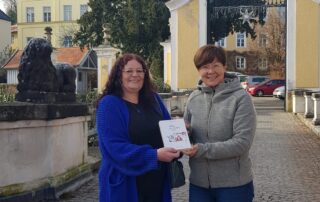 Bürgermeisterin Sissi Schätz erhält historischen Roman von Marianne Scherer