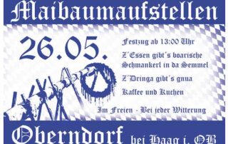 Maibaumaufstellen und Kesselfleisch Altlandkreis WS Maibaumaufstellen und Kesselfleisch Von Christian Huber|2022-05-25T08:27:58+02:00Mi. 25.5.2022 - 6:35|Kategorien: Altlandkreis WS|Tags: OBERNDORF / WINDEN| Veranstaltungen am Vatertag in Oberndorf und am Montag in Winden Weiterlesen 0
