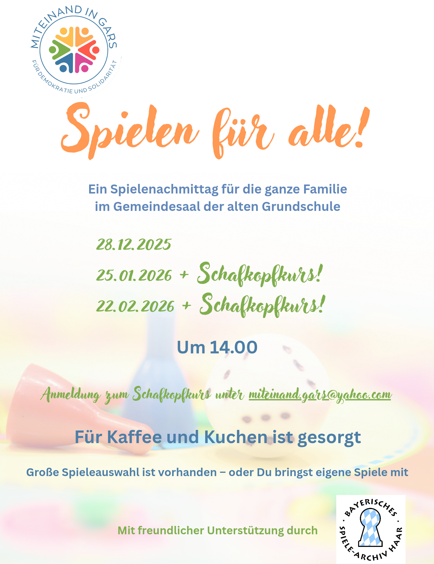 Morgen Spielenachmittag im Garser Gemeindehaus