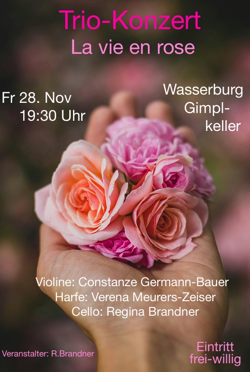 Triokonzert mit Geige, Cello und Harfe am Freitag im Gimplkeller
