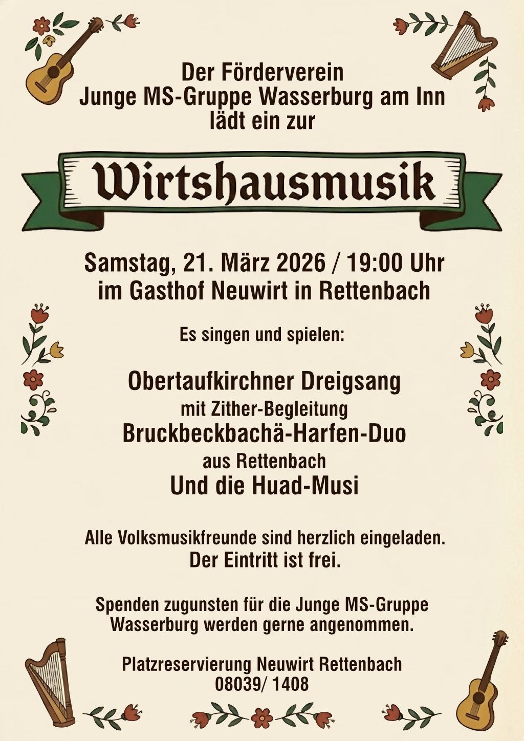 Am 21. März im Gasthof Neuwirt in Rettenbach zugunsten der „Jungen MS Gruppe Wasserburg"
