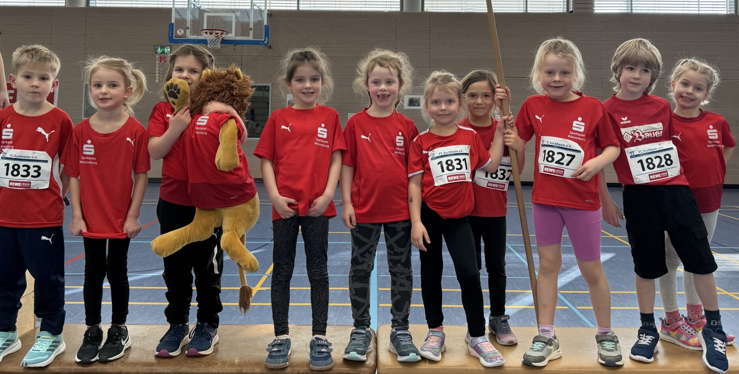 U8-Leichtathletik-Team des TSV Wasserburg mit viel Freude beim Wendelstein-Hallencup