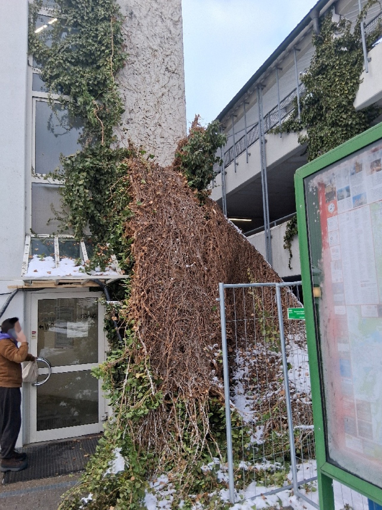 Efeu am Parkhaus musste entfernt werden
